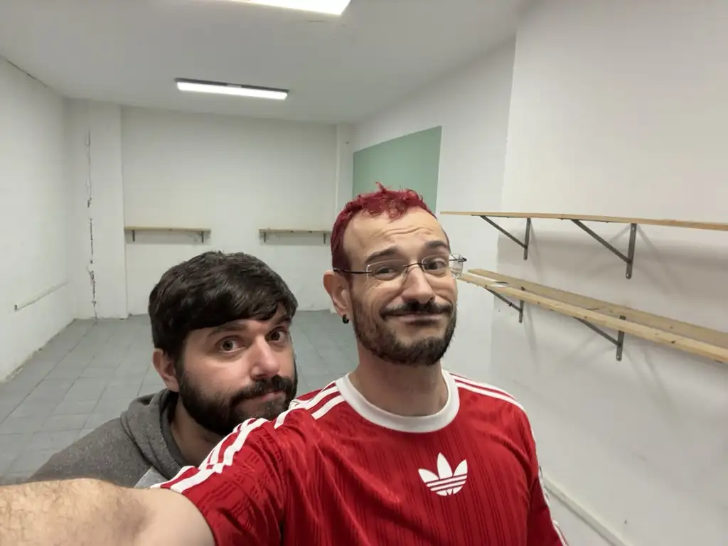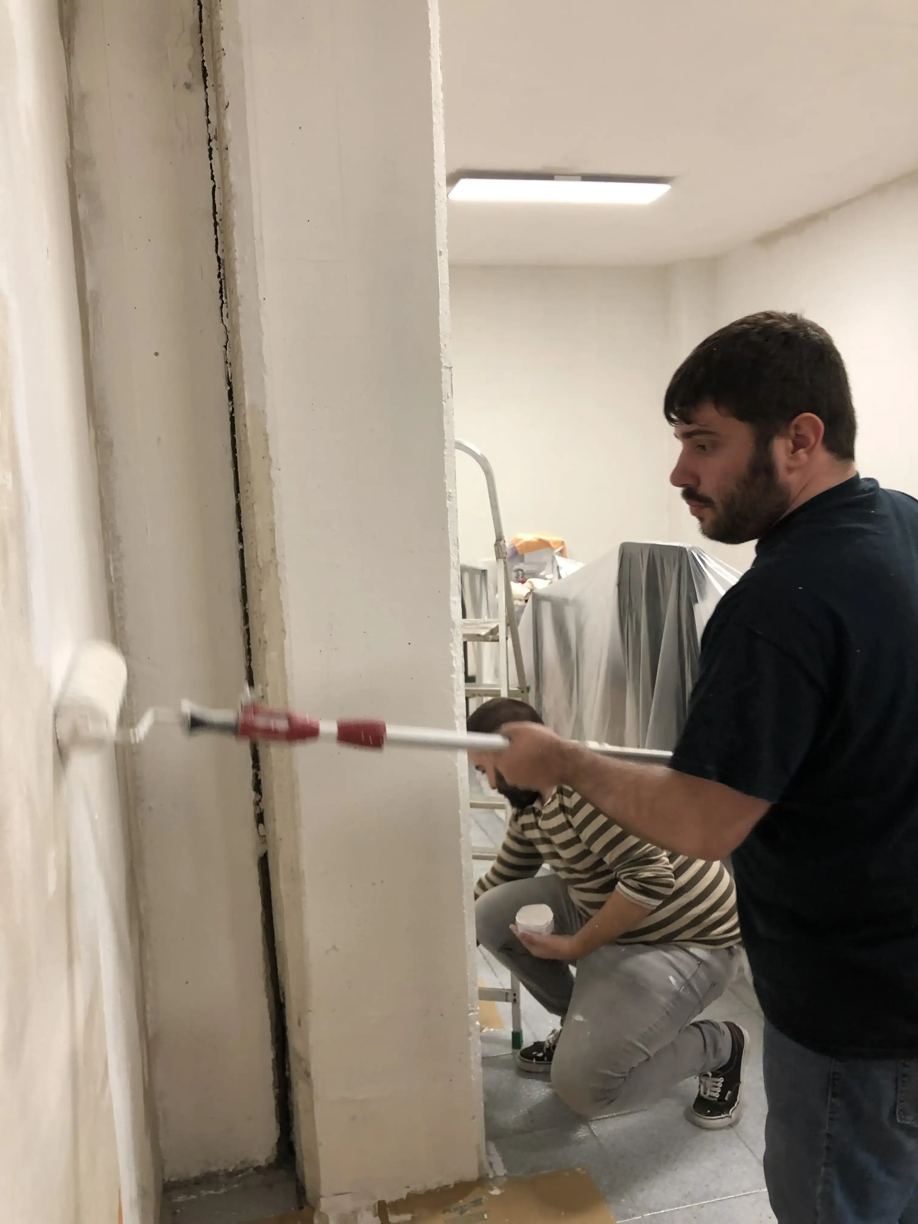 Dani y Edu dándole duro a la pintura: