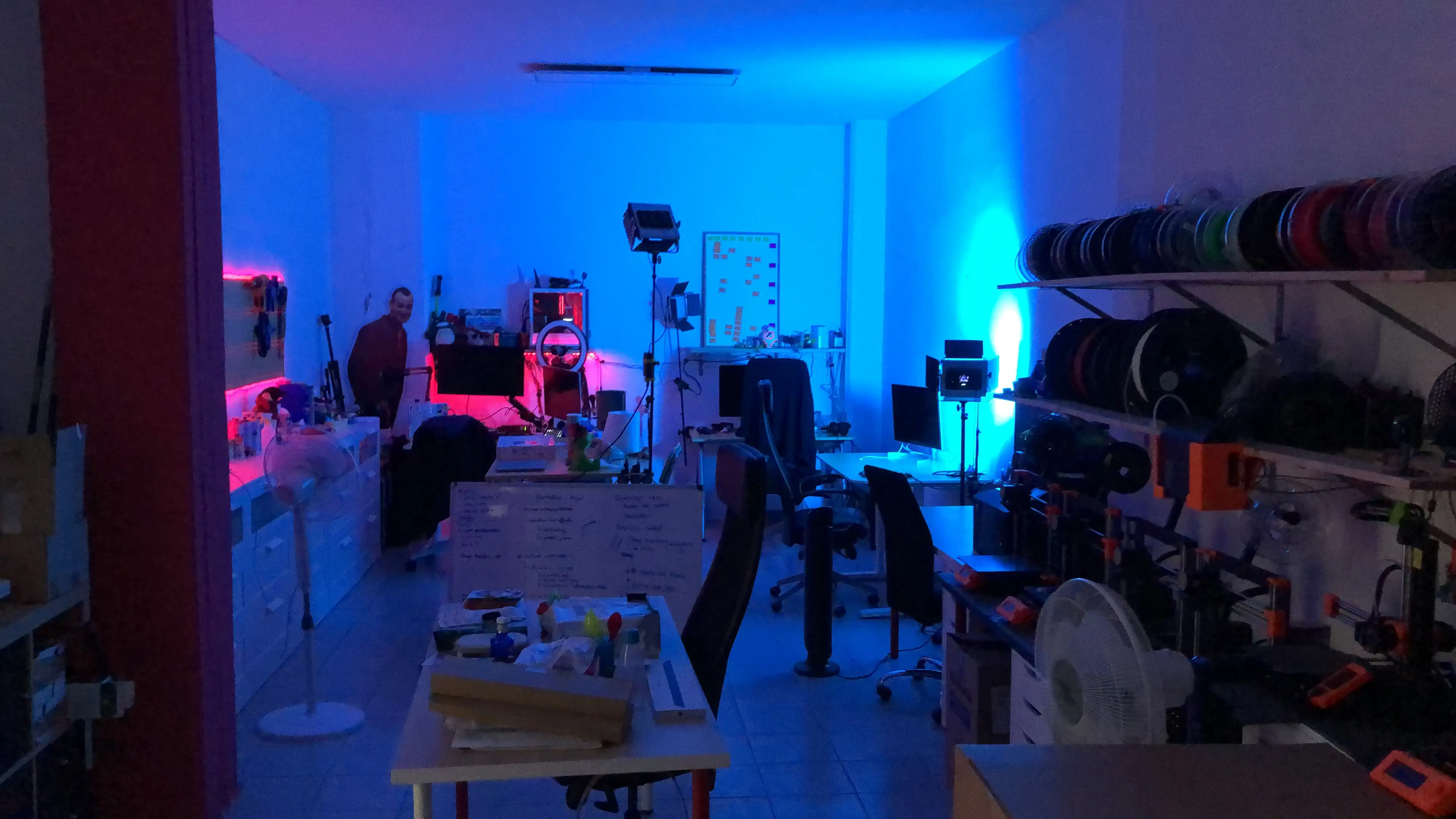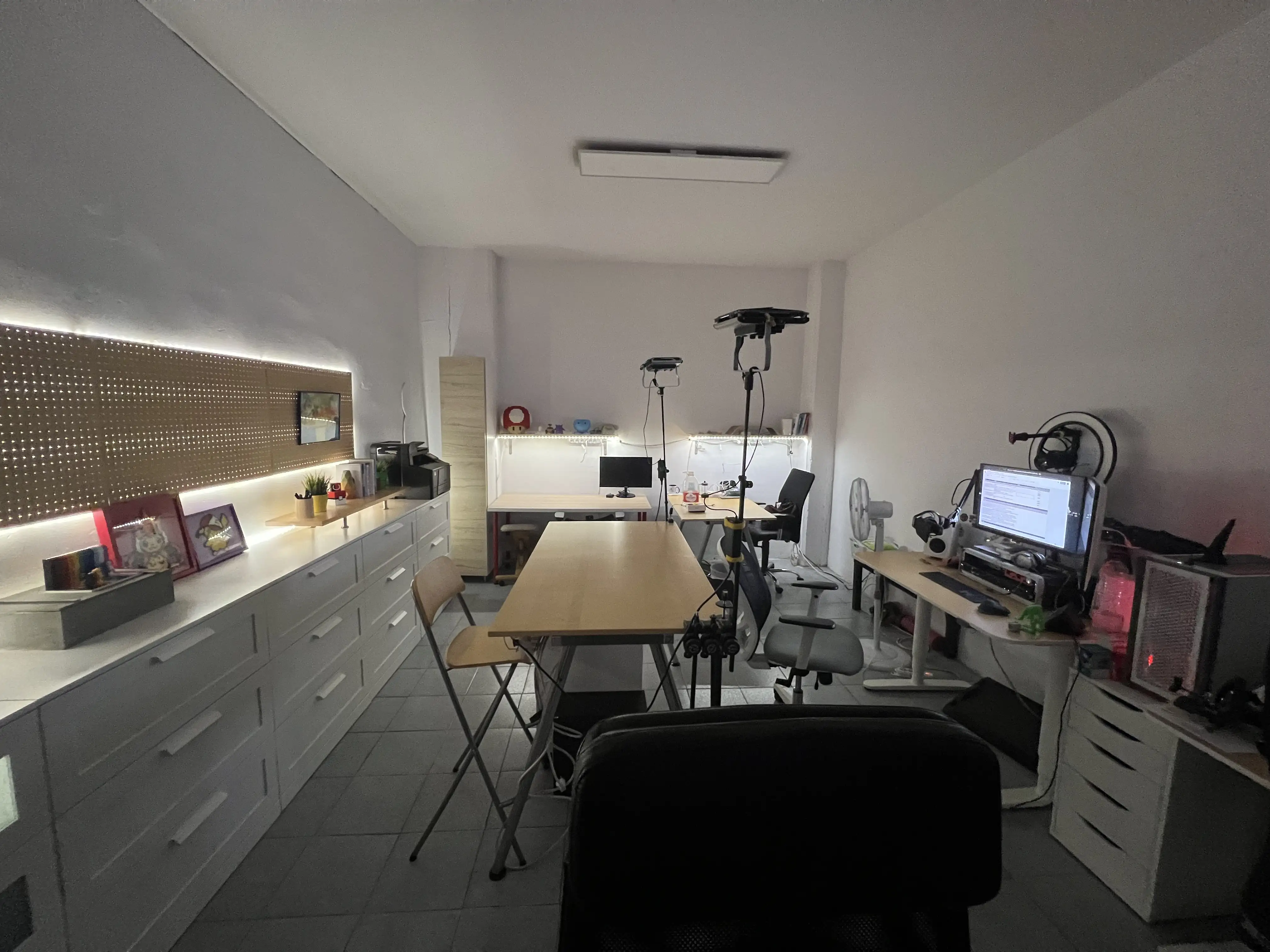 Pusimos la zona de trabajo al fondo, y movimos el estudio al medio. Y teníamos que haber hecho esto desde el principio, esto era mucho más cómo para todo.