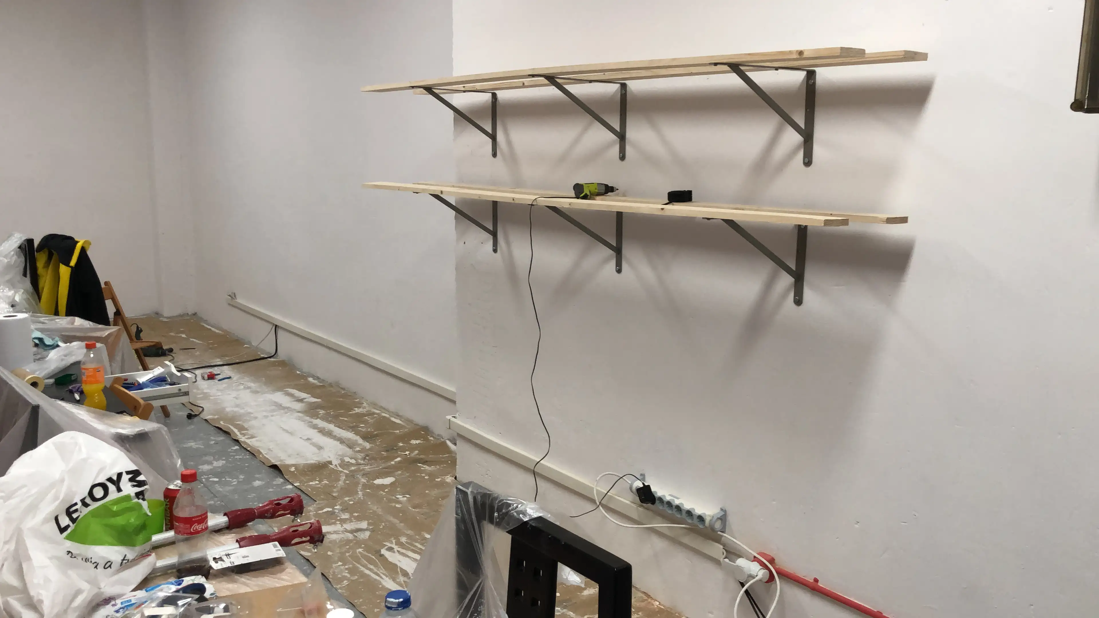 Pintamos las paredes, colocamos estanterías, y colocamos bien los cables. Una paliza, pero el taller ya parecía otra cosa: