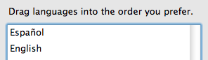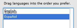 ¿Y cómo ordenamos la lista de idiomas para poner el Español primero? Busca el español en la lista, púlsalo y arrástralo hacia arriba.