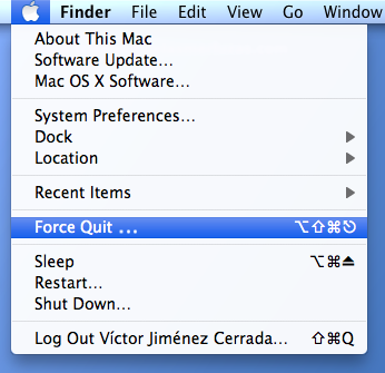 Pulsa la manzana en la barra superior y en el menú que se despliega selecciona "Force Quit …":
