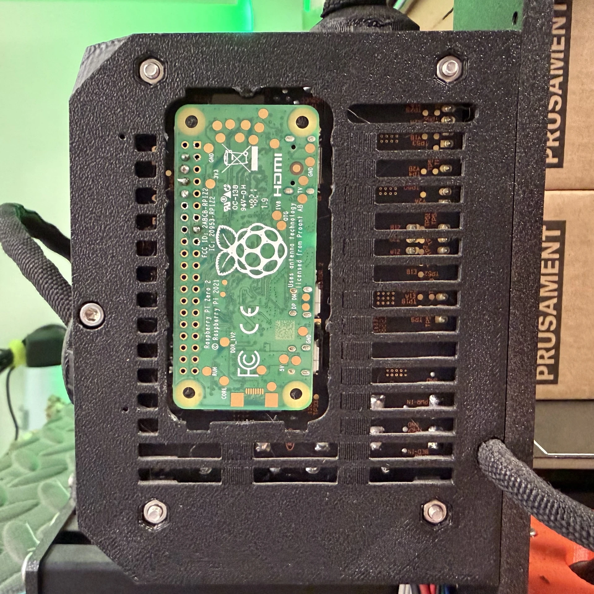 Ambas son modelo MK3S y tienen una Raspberry Pi Zero 2 W que las conecta a la red local. Se pueden controlar remotamente a través de red local via PrusaLink, o también a través de la nube de Prusa con PrusaConnect.